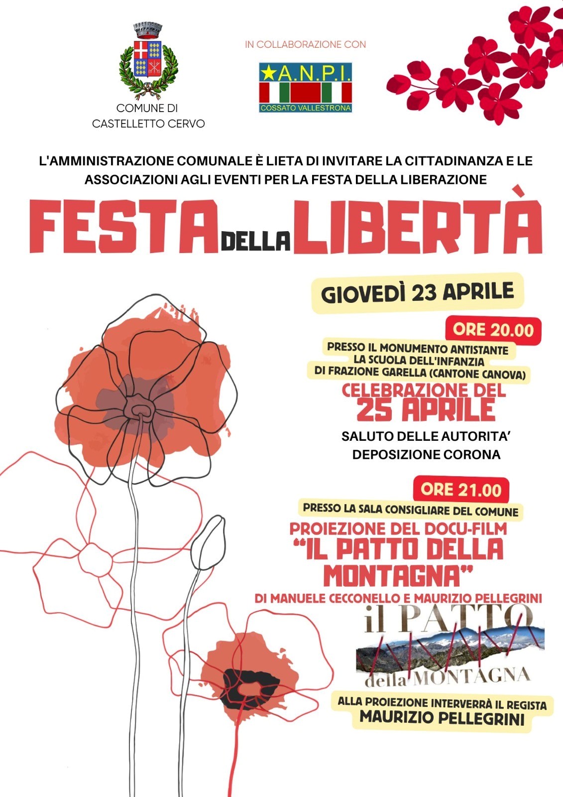 Il programma prevede la deposizione di una corona in memoria dei Caduti, seguiranno gli interventi del Sindaco, di ANPI Cossato e Vallestrona e del Gruppo Alpini di Castelletto Cervo.
