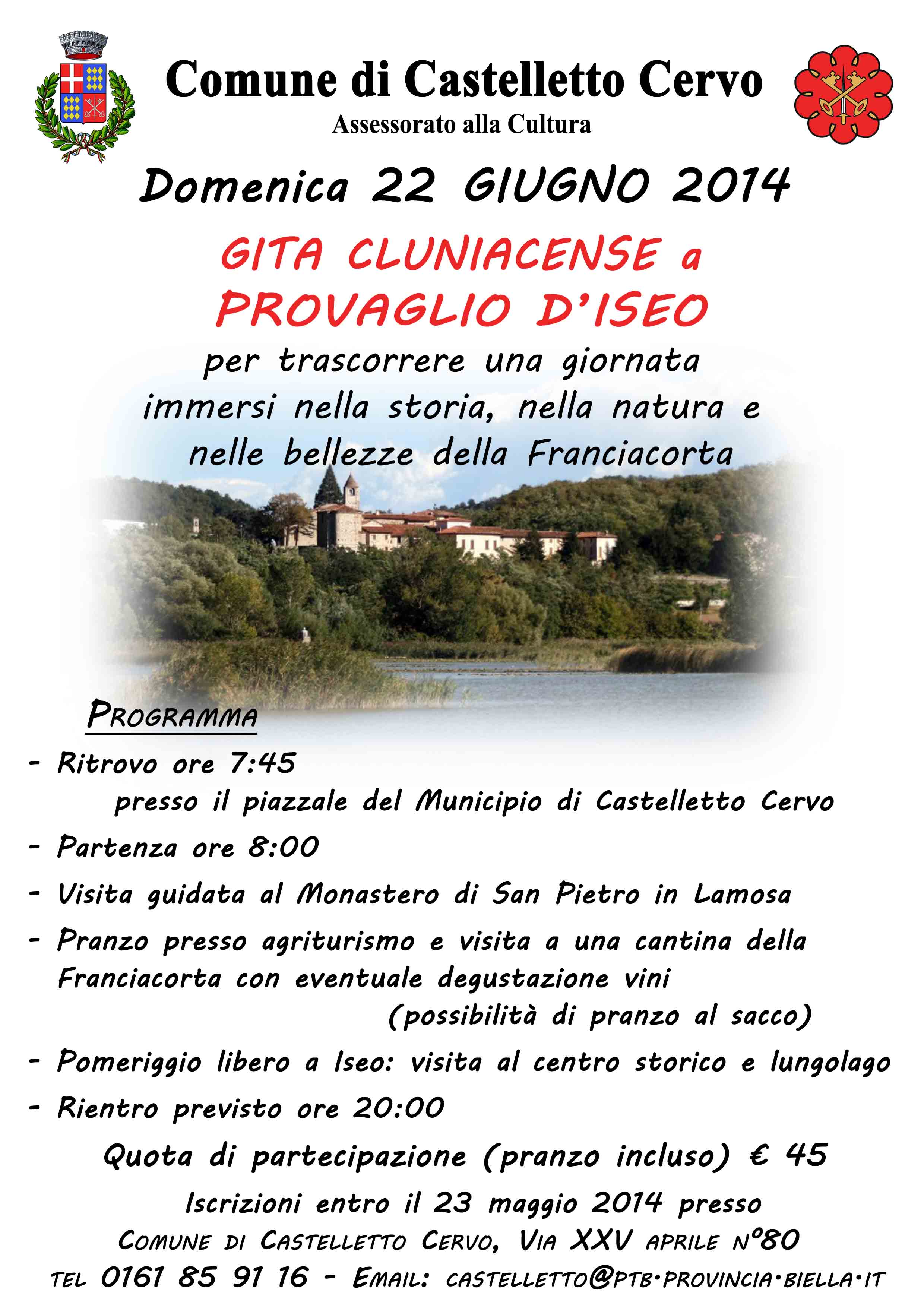 Il 22 giugno si parte per Provaglio d'Iseo. Sarà l'occasione per visitare il Monastero di San Pietro in Lamosa appartenente come Castelletto alle Federazione Europea dei Siti Cluniacensi.